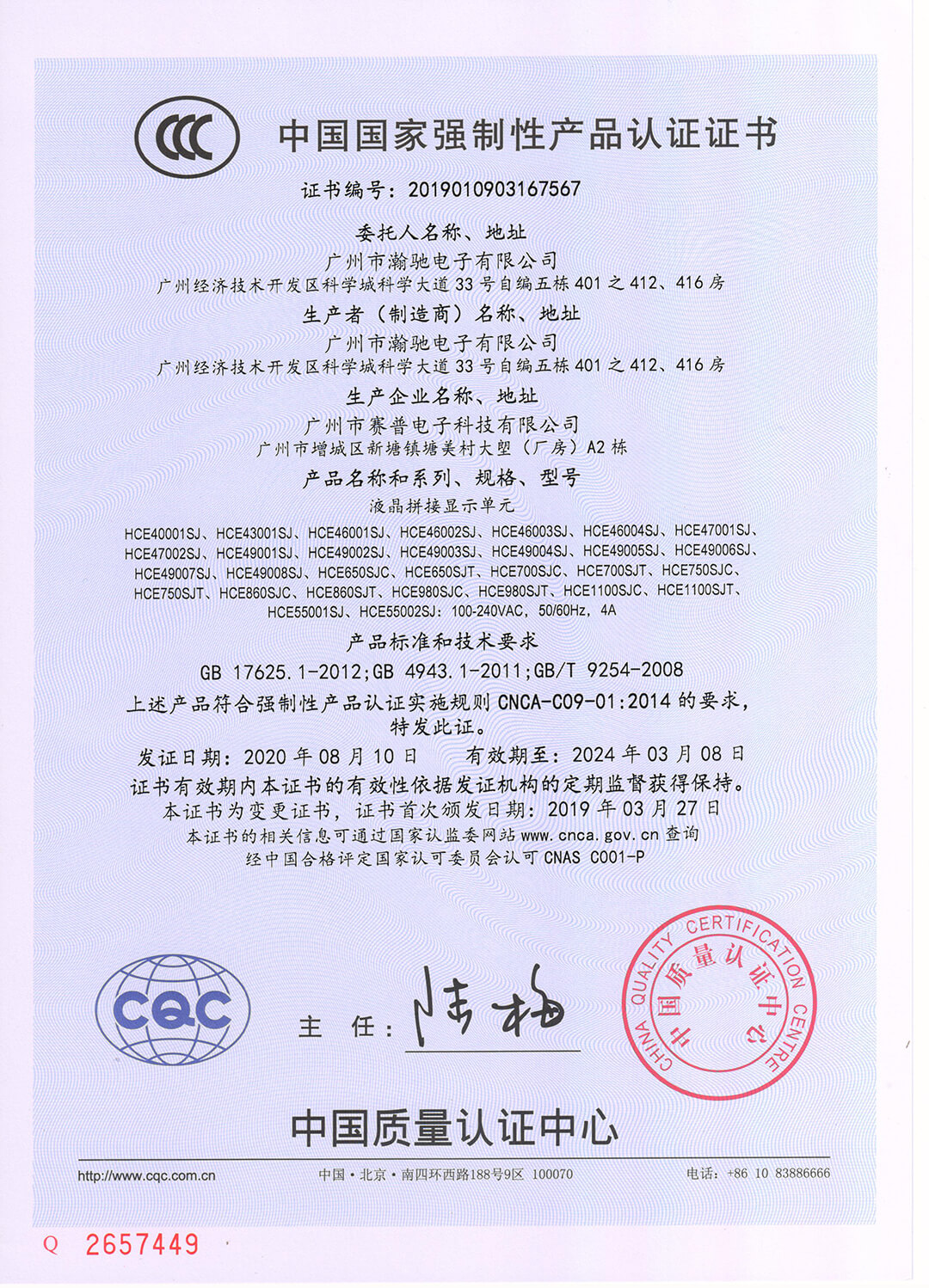 松下電器專業(yè)顯示器產(chǎn)品資質(zhì)證書