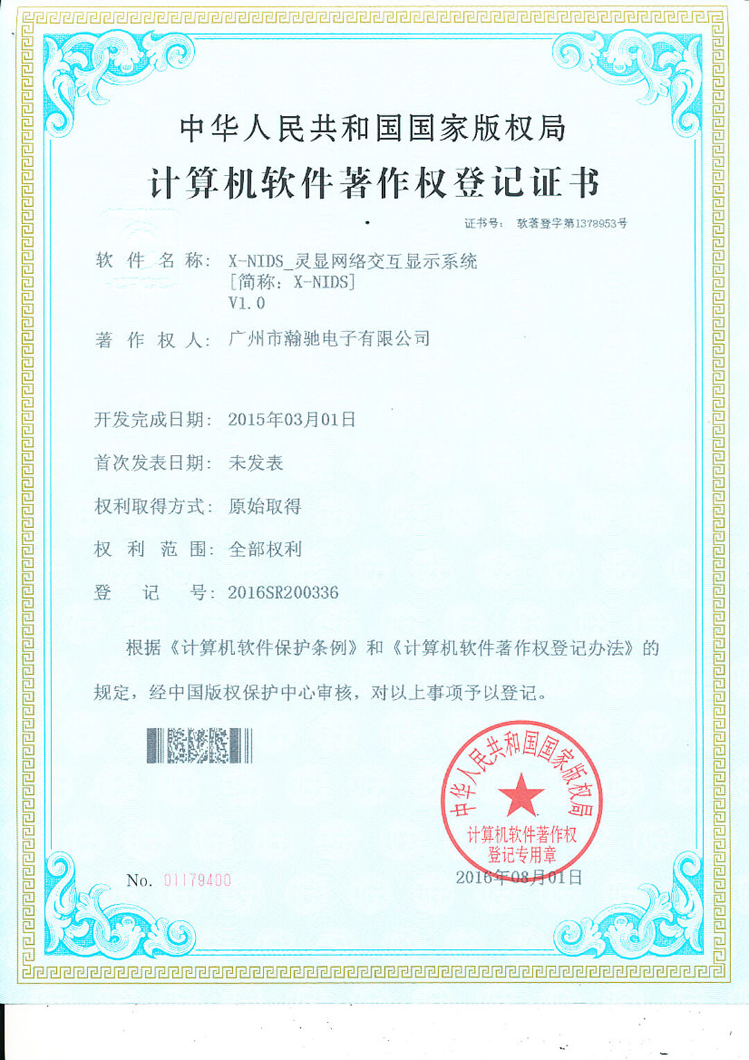 軟件著作權(quán)證書原件