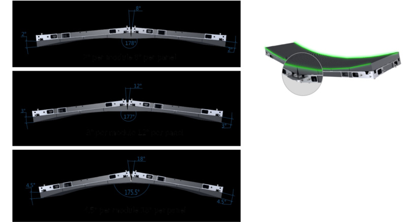 標配箱體+定制內弧套件+角度塊:可實現箱體間8°、12°、18°弧度,為指控場景設計提供更多可能